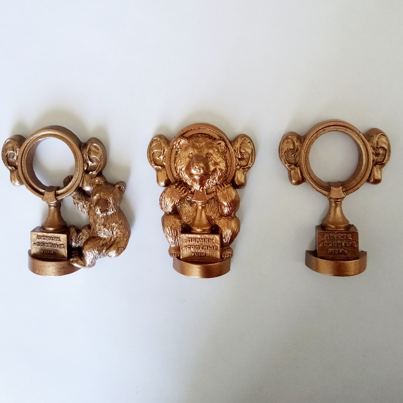 Магнит "пермяк соленые уши". сувенир изготовлен из прочного пластика, окрашен под бронзу и легкое золото. в один из магнитов можно вставить небольшое фото. в другом магните свою голову в пермский памятник "пермяк соленые уши" засунул медведь, символ Пермского края и России, высота 7,5 см.