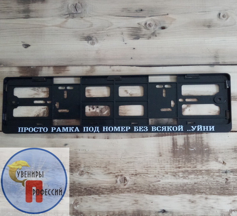 Рамка автомобильная под номер с надписью "Просто рамка под номер без всякой ...уйни" , белые буквы на чёрном фоне.